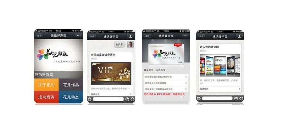 所谓得微官网,就是公众账号变成一个微型的官方网站。但是展现形式要比现在丰富的多。目前公众账号普遍的做法无外乎回复1,公司简介。回复2,产品信息。回复3......形式比较单一,参与感不好,微官网也是目前一些第三方开发平台推出的产品,笔者认为前景很大,就是通过HTML5的技术手段链接到微信账号内,粉丝触发了相关关键字,就有一个非常漂亮的页面展现出来,集合了公司简介、产品信息、价格、门店地址等等信息,操作便利而且界面很炫、很酷,粉丝会觉得赏心悦目,也不失为一个休闲方式,这样对于商家而言,就有了价值。